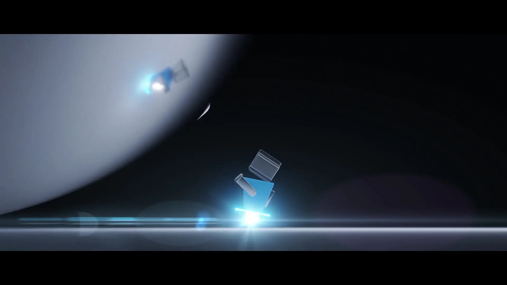 The short film is about two robots. At the beginning you only see a blue one (symbol for a man). He wakes up and discovers a silver sphere. On the way to it he has a flashback, how he meets a purple (symbol for a woman) robot. As the movie progresses, it turns out that this purple robot was once hit by a huge ball and the two were separated. The blue one continues on its journey and shoots away many balls until it comes across a big one. This one he cannot push away. He is about to be crushed when the purple robot appears with many white ones and together they save the blue one.